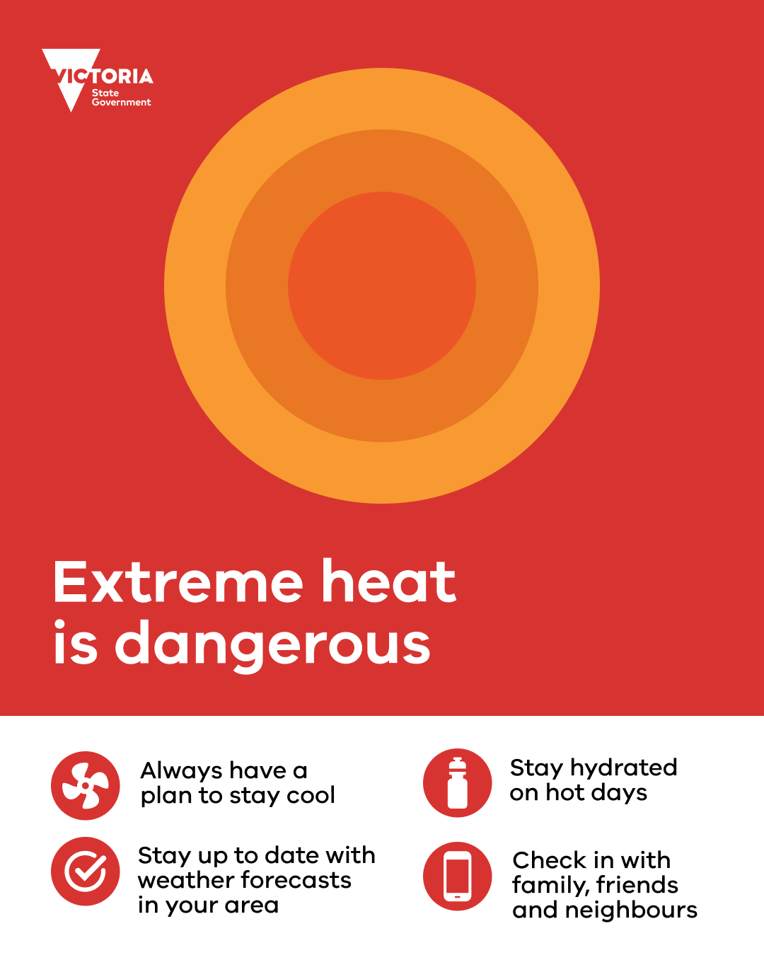 Heat kills more Australians than any natural disaster. Extreme heat or heatwave is a period of unusual and uncomfortable hot weather that can negatively affect our health. Below are some contact to keep you informed and safe in the heat.